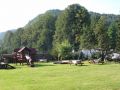 Wokół pensjonatu rozciąga się duży, ogrodzony teren rekreacyjny z placem zabaw dla dzieci oraz miejscem na ognisko i grilla. Posiadamy niewielki staw, w którym nasi Goście chętnie sami łowią pstrąga (i oddają kucharzowi do smażenia).